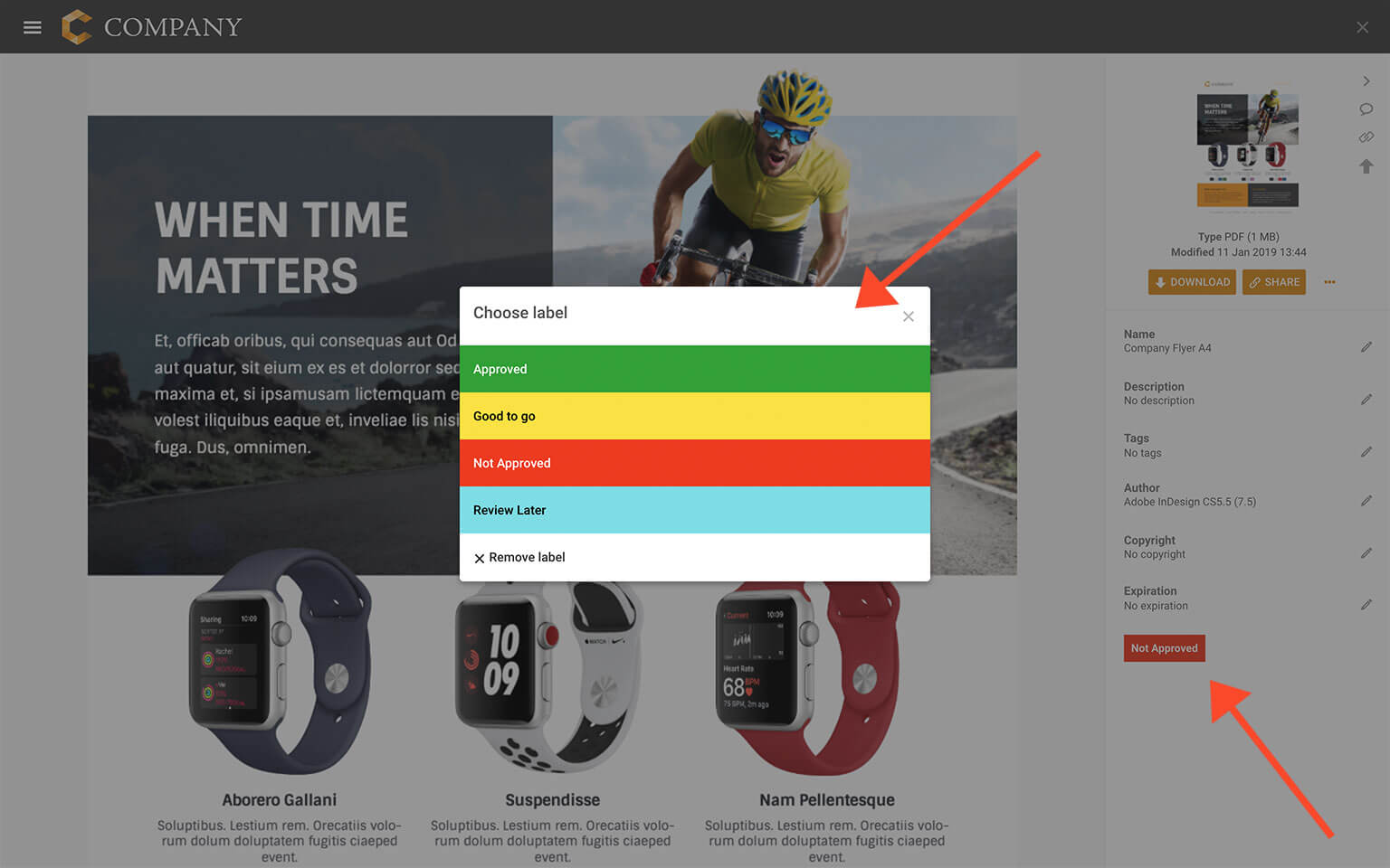 And they can change label on the file e.g. from Not Approved to Approved. Read more about Labels.