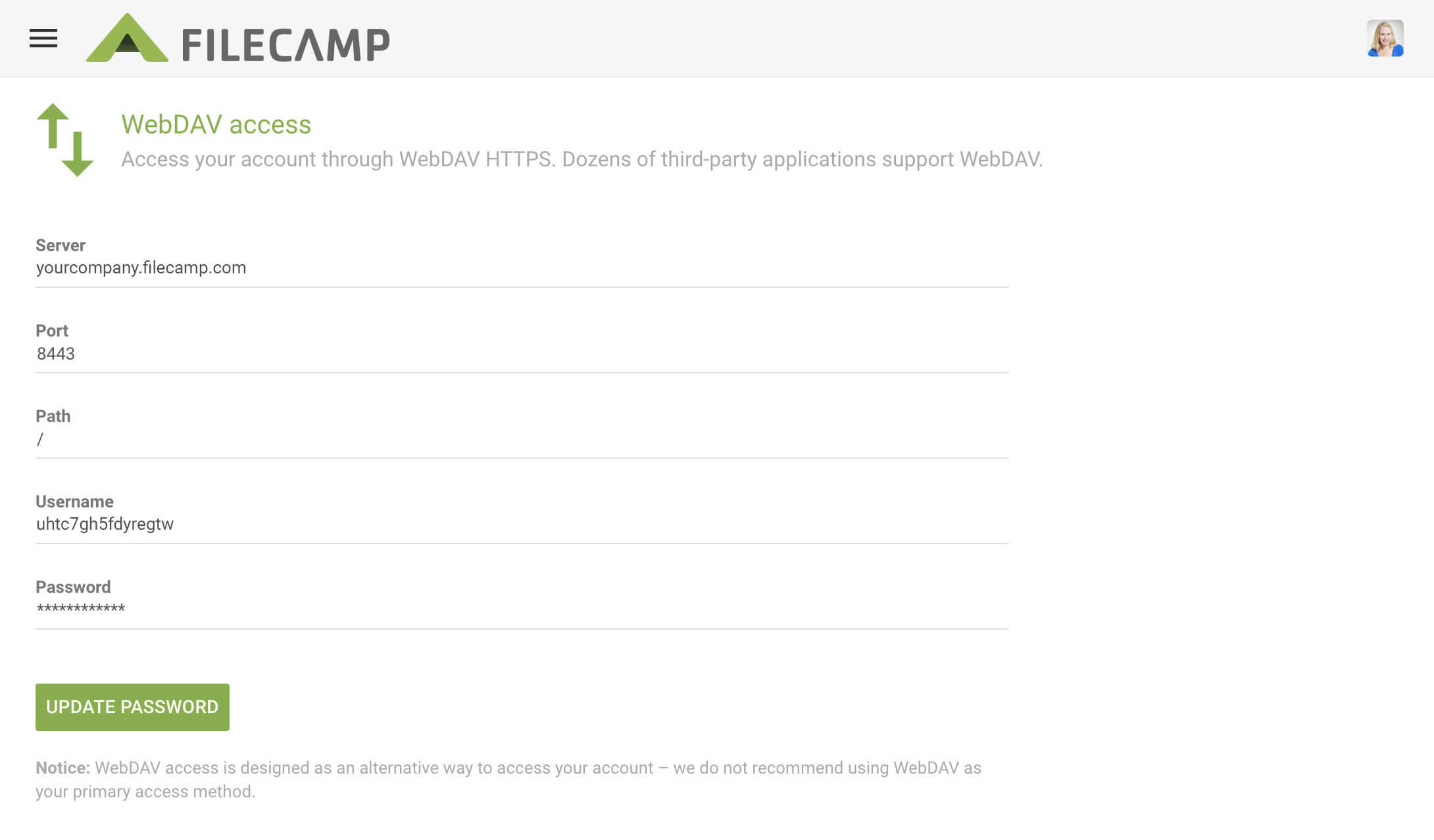 Filecamp WebDAV access